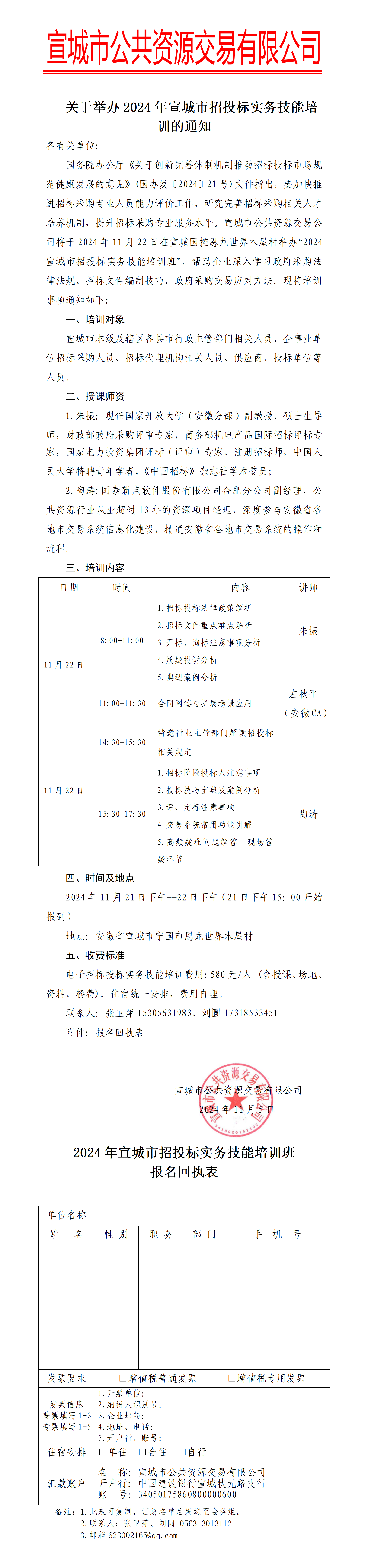 關于舉辦2024年宣城市招投標實務技能培訓的通知